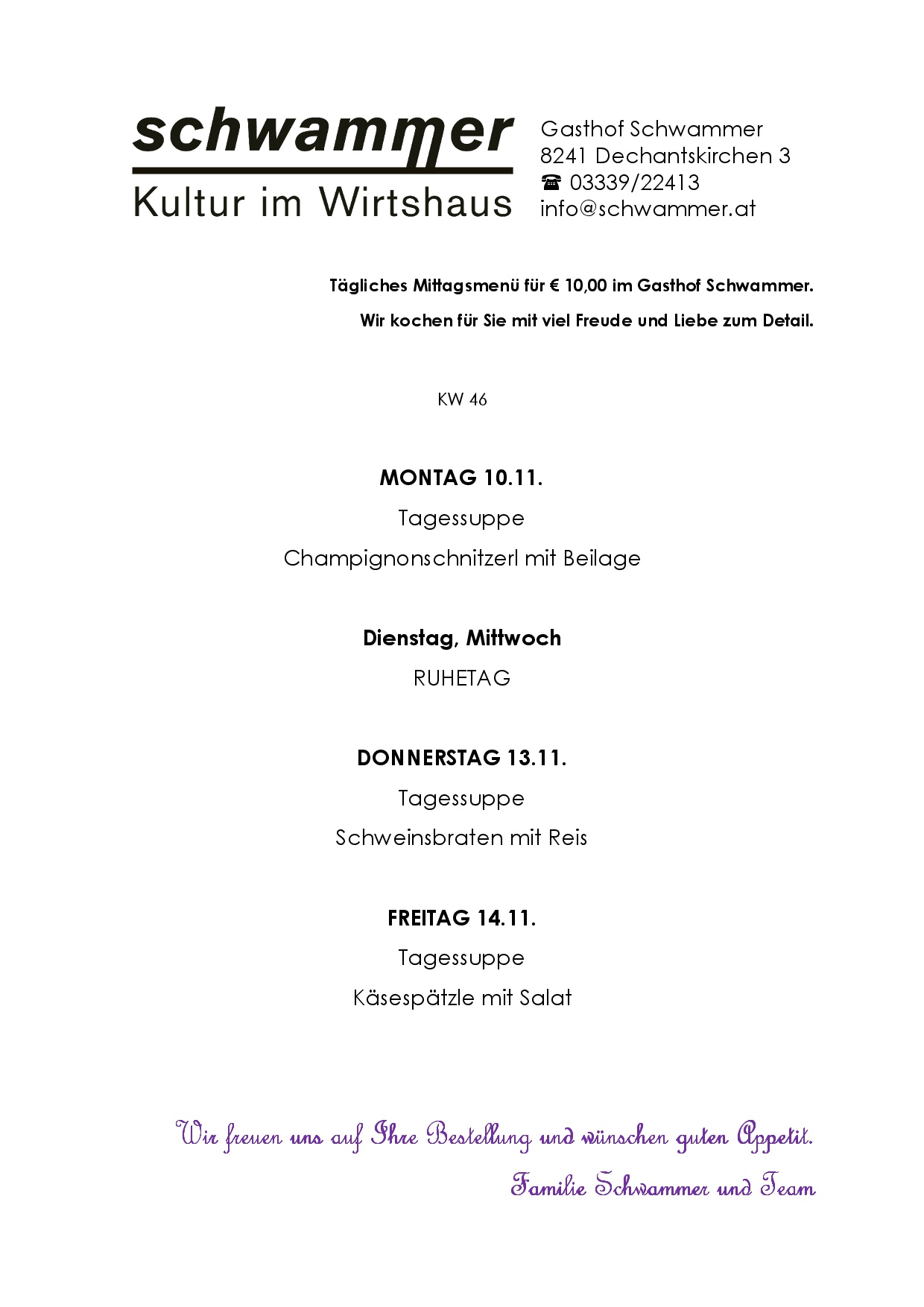 Franz Schwammer senior übernahm - damals 16-jährig und Vollwaise - den Gastbetrieb. Zusammen mit seiner Frau Theresia baute er mit sehr viel Fleiß und Freude den Betrieb immer weiter aus. Seit 1993 führen wir - Franz Schwammer junior mit Familie - den Betrieb weiter.